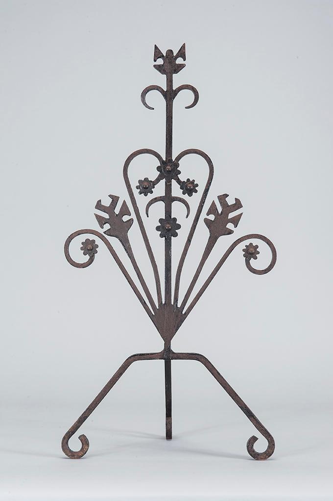 Wrought-Iron Andiron with Geometric and Vegetal Motifs